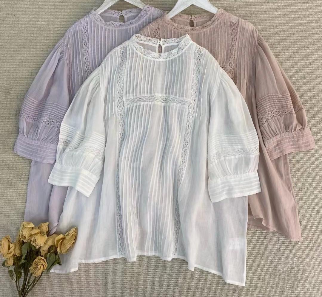 It’s a new hand-made ramie blouse, vintage style design. The clothing has a meticulous work. 3 colors available, very elegant and delicate.