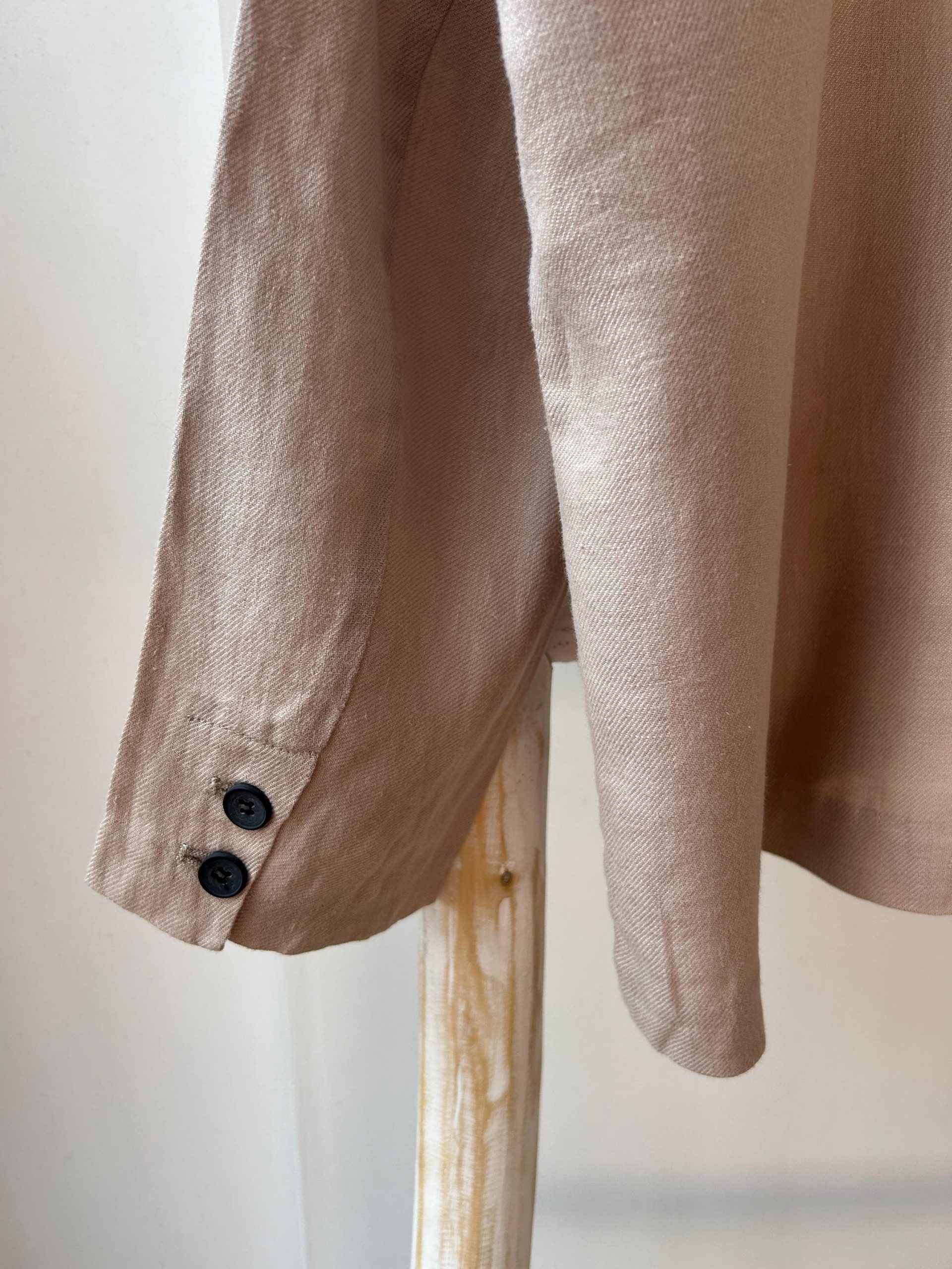 This is a special made linen smart casual jacket/ coat. It is suitable for all the casual occasion. The touch is soft, thin, and light. It would be perfect for matching dress or shirts.
