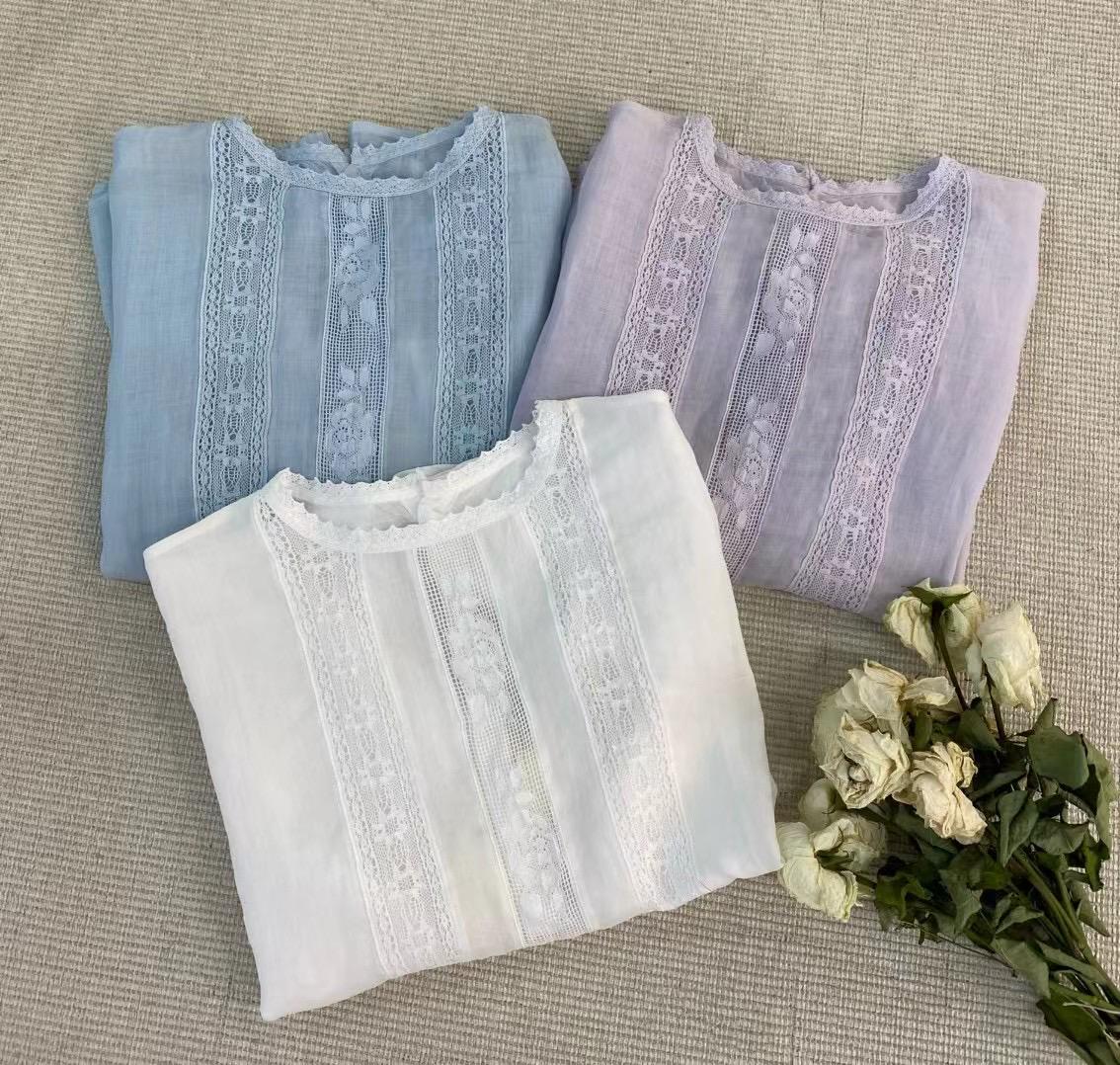 It’s a new handmade blouse, delicate lace and embroidery romantic design. The fabric is a little sheer, so layering with a camisole is recommended.